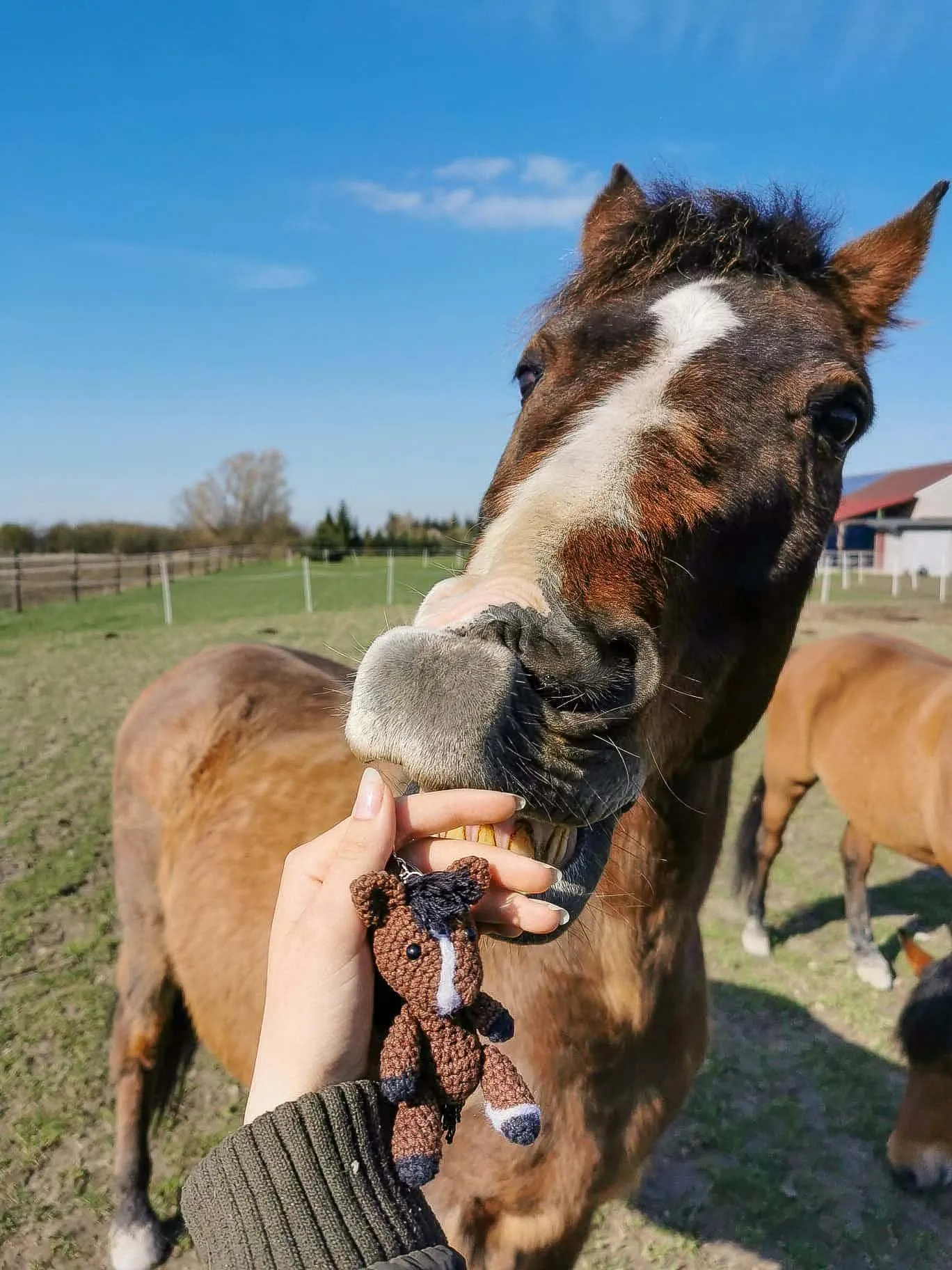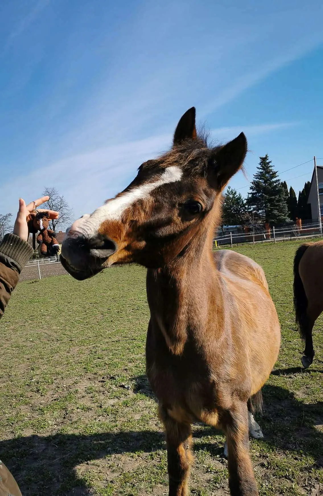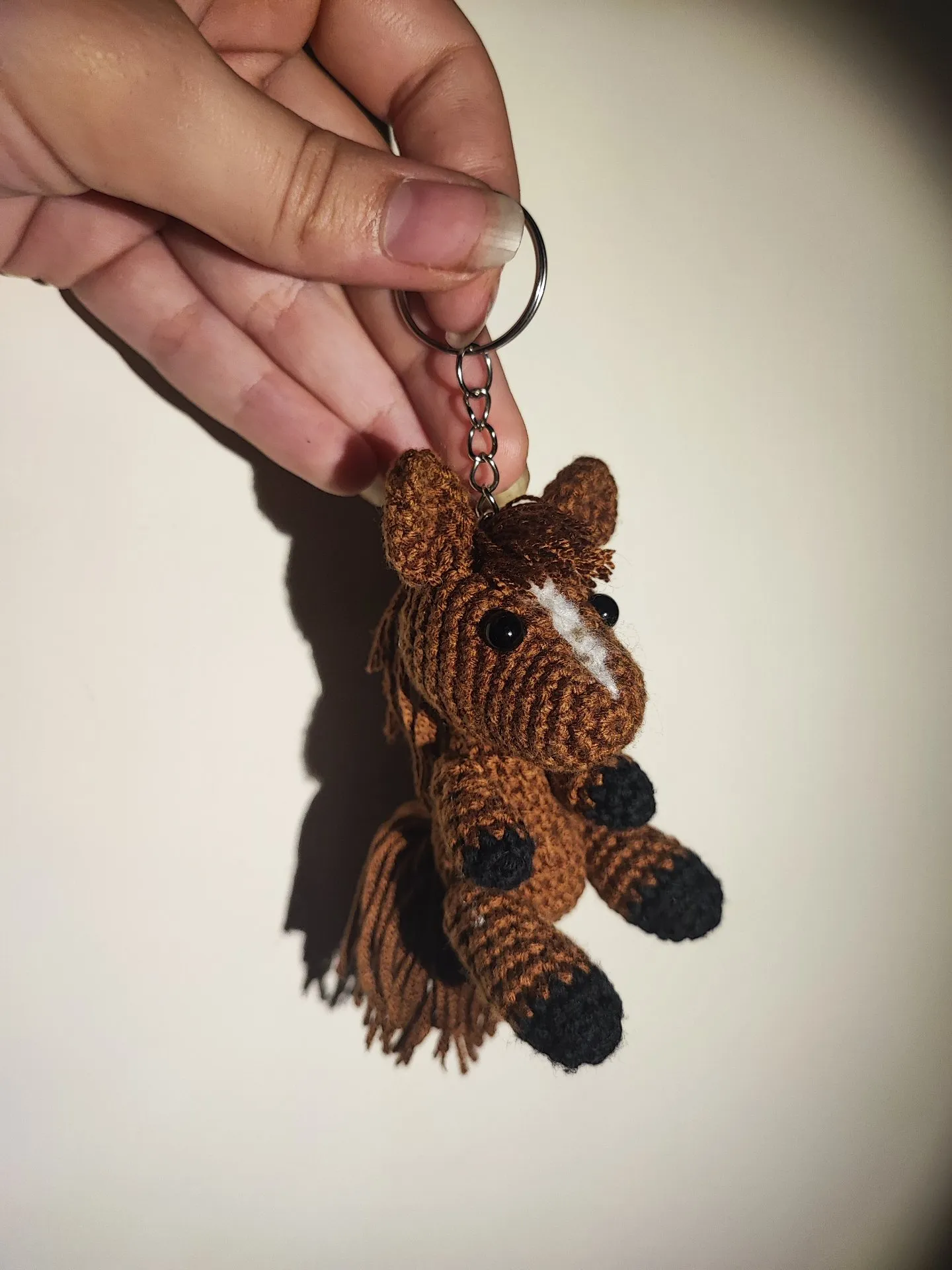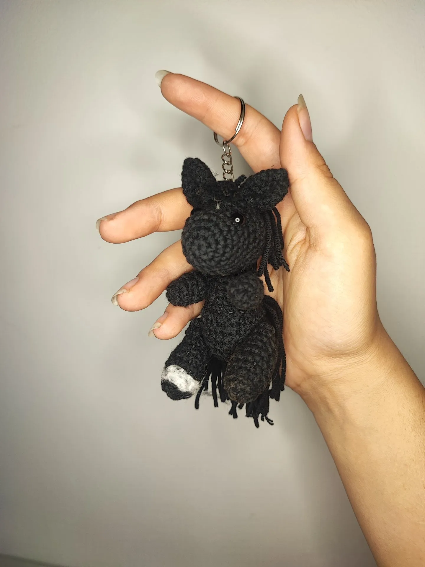 Konik mierzy ok. 8cm (±2cm zależnie od wykorzystanej włóczki) wielkość bardzo poręczna dzięki czemu łatwo go znaleźć w odmętach plecaka czy torby