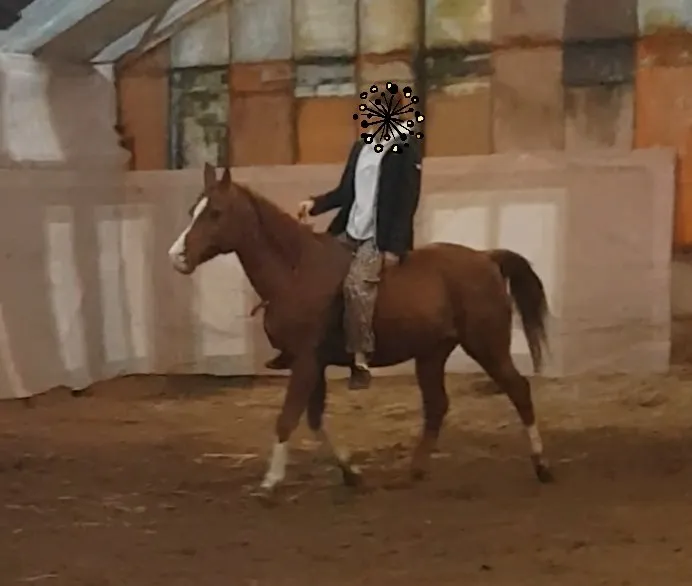 Przepiękny kilkunastoletni łasuch. Spokojny na ujeżdżalni, za to energiczny w terenie. Bardzo miękko noszący (wygodny)! Nie ma żadnych narowów.