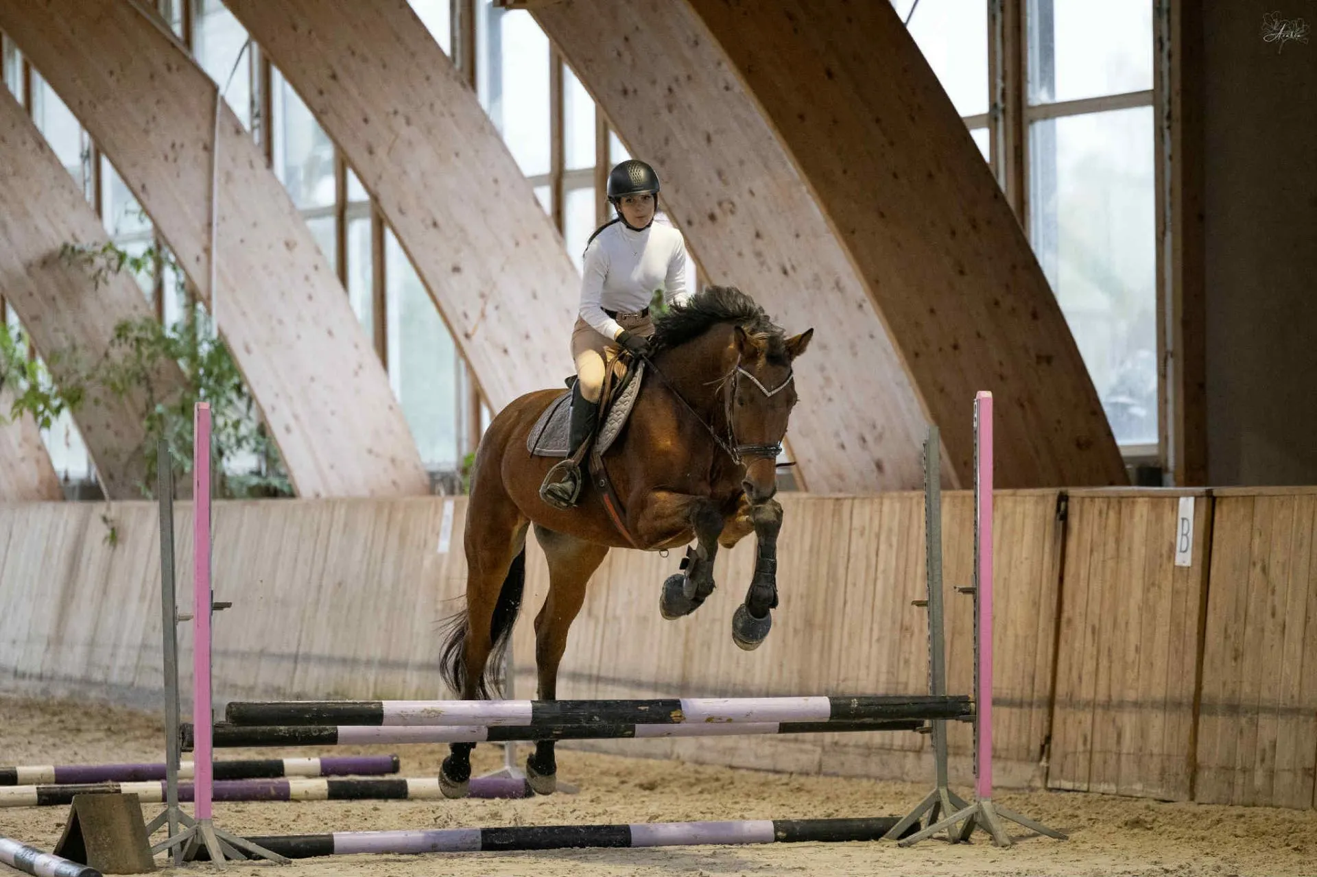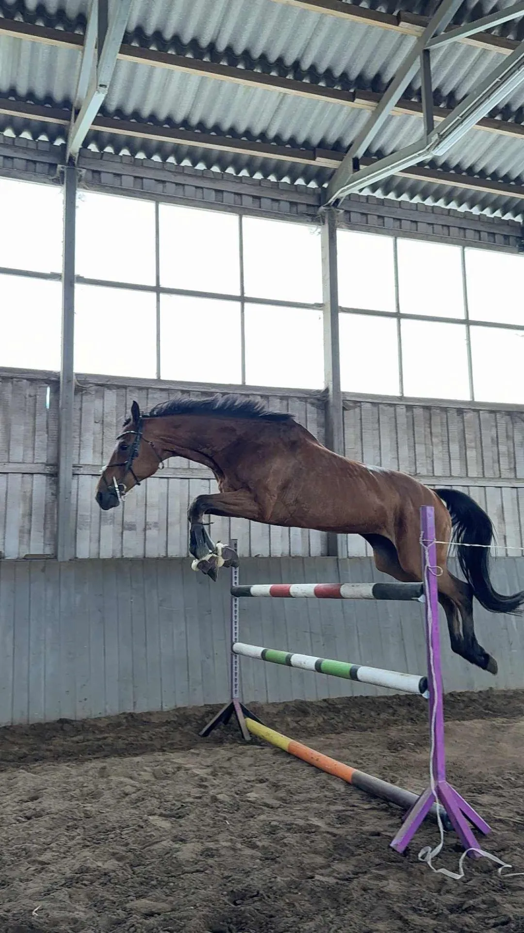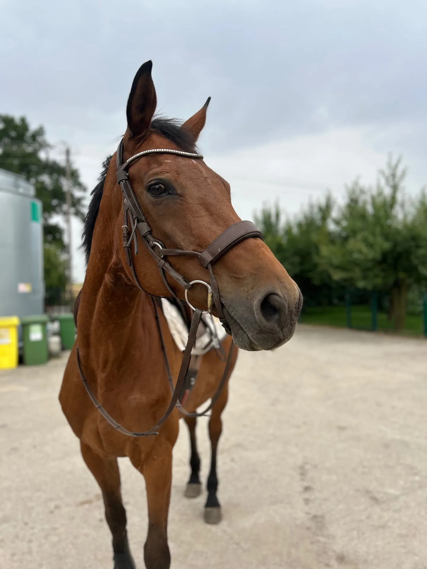 Klacz została zajeżdżona na początku tego roku, w treningu od 2 miesięcy więc nie jest wyeksploatowana. W domu naskakana do metra, w korytarzu do 145 włącznie. Nowe miejsca nie robią na niej żadnego wrażenia.