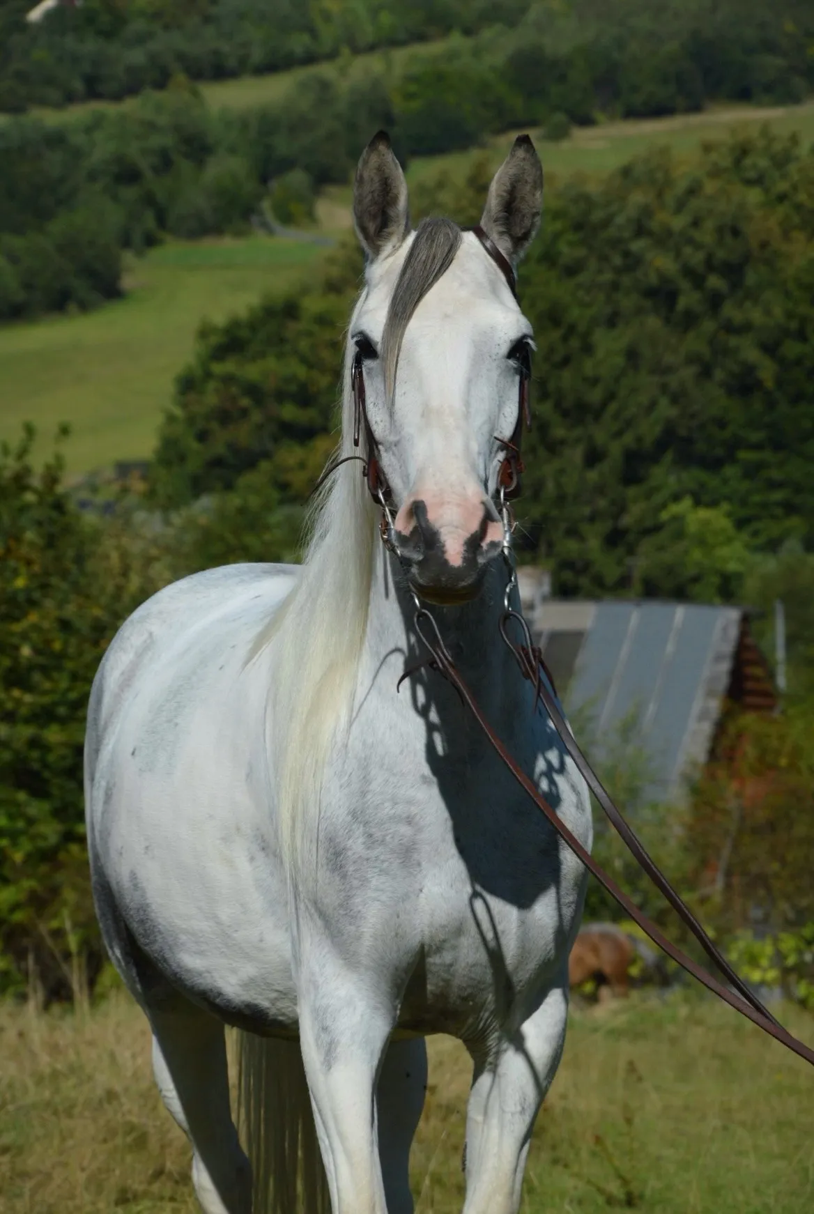 Piękna, młoda klacz o niezwykle efektownej maści i spokojnym, zrównoważonym charakterze. Zajeżdżona, regularnie pracuje pod siodłem, chętnie chodzi w teren i pewnie prowadzi jako koń czołowy. Szybko reaguje na pomoce, co czyni jazdę przyjemną, jednak wymaga pewnego, konsekwentnego jeźdźca – nie jest koniem dla początkujących.