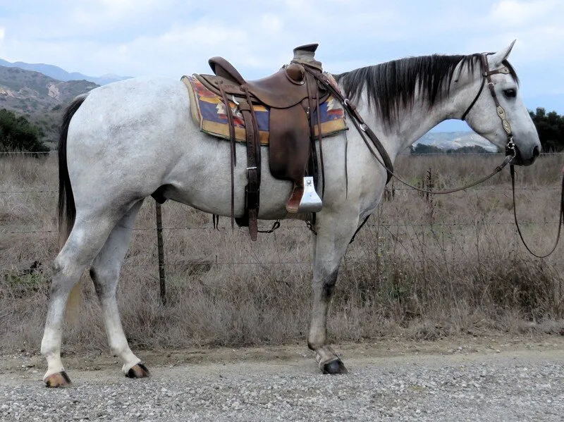 Boxcar to niezwykle łagodny i bardzo dobrze zbudowany 6-letni siwy wałach AQHA o wadze 15,2 Hand. Jest tak dobroduszny, przyjazny i łagodny, jakiego można sobie życzyć. Na ujeżdżalni porusza się bardzo płynnie, zbiera się, ma ładny kłus ćwiczebny i wychodzi na komendę, zawsze podejmując właściwą nogę. Dobrze się zatrzymuje i z łatwością cofa się miękko i mija bokiem, aby otwierać i zamykać bramki. Niesie flagę, plandeki i tym podobne rzeczy i jest naprawdę spokojny, ale potrafi być pomocny, gdy zostanie o to poproszony. Ten koń jest bardzo solidny i dobrze radzi sobie z jazdą po ruchliwych ulicach naszej okolicy, jak również na naszych wyboistych górskich szlakach. Bardzo dobrze radzi sobie w naszym stromym terenie. Będzie prowadził, podążał, jechał cicho w grupie lub samotnie. Przekracza rzeki, strumienie, powalone drzewa i mostki na szlakach. Ma pewny krok i jazda na nim to przyjemność. Równie dobrze sprawdza się w jeździe po naszej okolicy. Boxcar świetnie radzi sobie na ulicach, gdzie szybko przejeżdżają pojazdy, gdzie budowane są drogi, gdzie hodowane są zwierzęta i gdzie spotykamy się podczas jazdy w mieście. To wyjątkowo łagodny wałach z świetlaną przyszłością. Przez całe życie był w dobrych rękach. Jest gotowy ukończyć biegi zgodnie z Twoimi preferencjami i świetnie sprawdzi się jako koń do jazdy terenowej, pokazowej lub do rodeo. Nie ma żadnych złych nawyków, nie odpoczywa po urlopie, jest w 100% bezpieczny, zdrowy psychicznie i dobrze wykonuje wszystkie nasze polecenia. Nie możemy się nachwalić! Obejrzyj film! Sprzedany! Przykro nam, że go przegapiłeś. Mamy innych, więc napisz do nas na adres ((petrahutler@gmx.com))) i sprawdź, czy mamy dla Ciebie godnego partnera! Udanej jazdy!