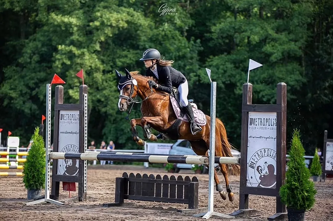 Jest idąca w parkurze, nadaje się dla bardziej zaawansowanej osoby. Chodzi w tereny sama jak i z innymi końmi, w domu skacze parkury 80cm, na zawodach 70cm, wielokrotnie na podium.