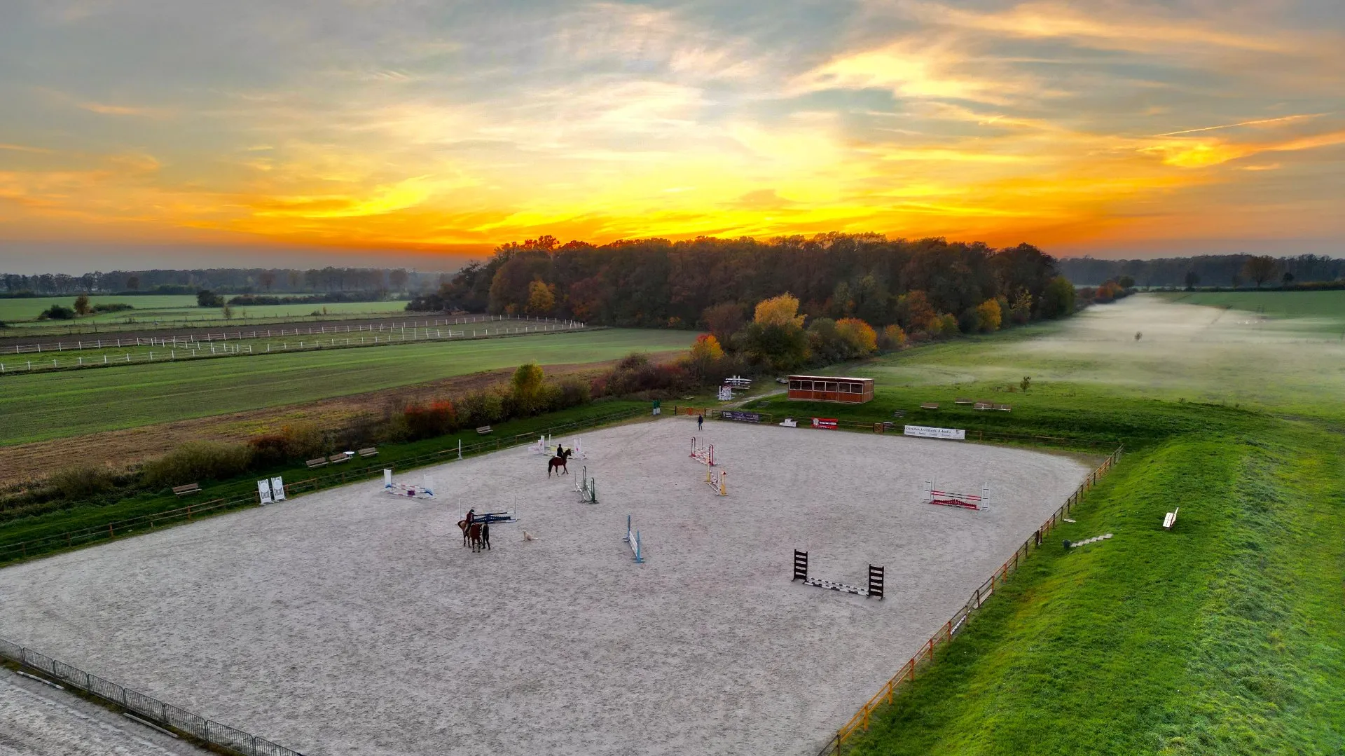 - Hipodrom (110m x 50m) z podłożem kwarcowym – idealny do treningów i zawodów.