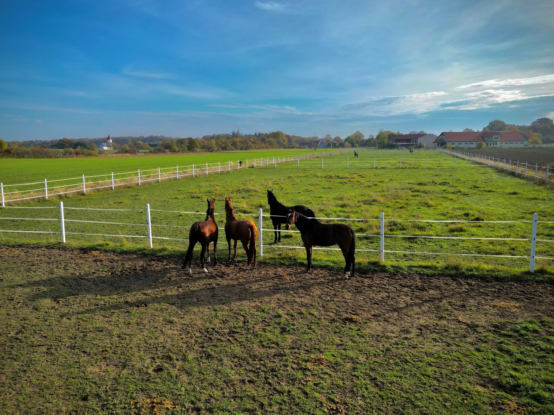 Malownicze otoczenie, pośród łąk i lasów stwarza niepowtarzalną atmosferę, która sprzyja zarówno relaksowi, jak i rozwojowi Twoich umiejętności jeździeckich. Tutaj czas płynie wolniej.