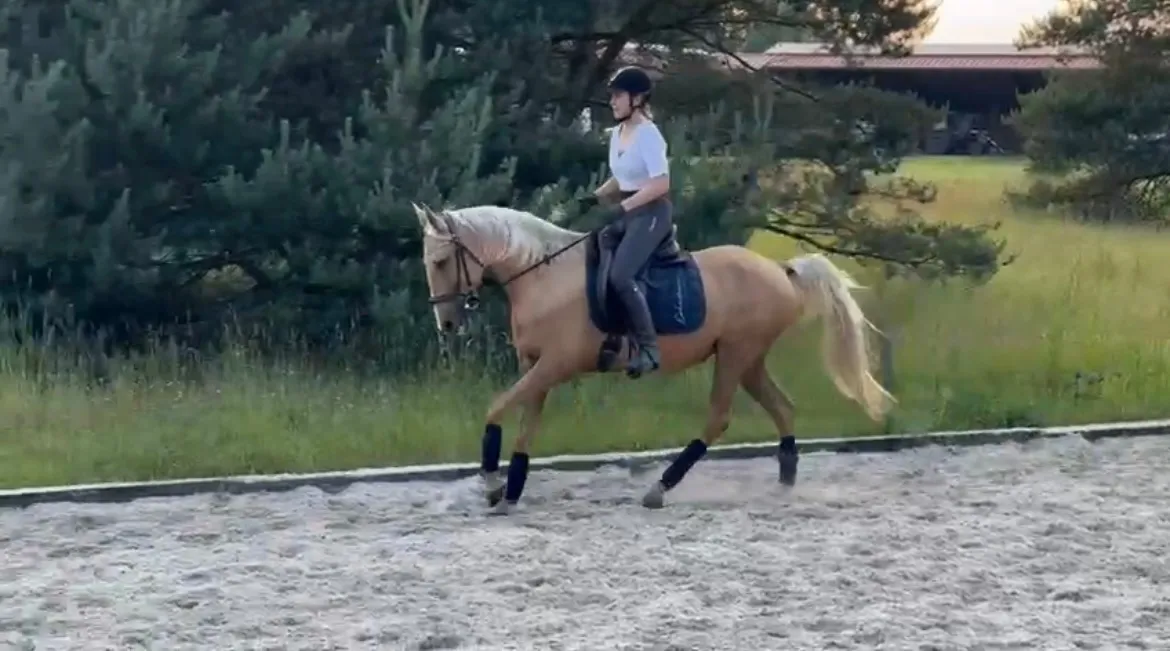 Klacz ma 10 lat. W tej chwili pracuje bardziej w kierunku ujeżdżenia. Jest bardziej do przodu niż do pchania.