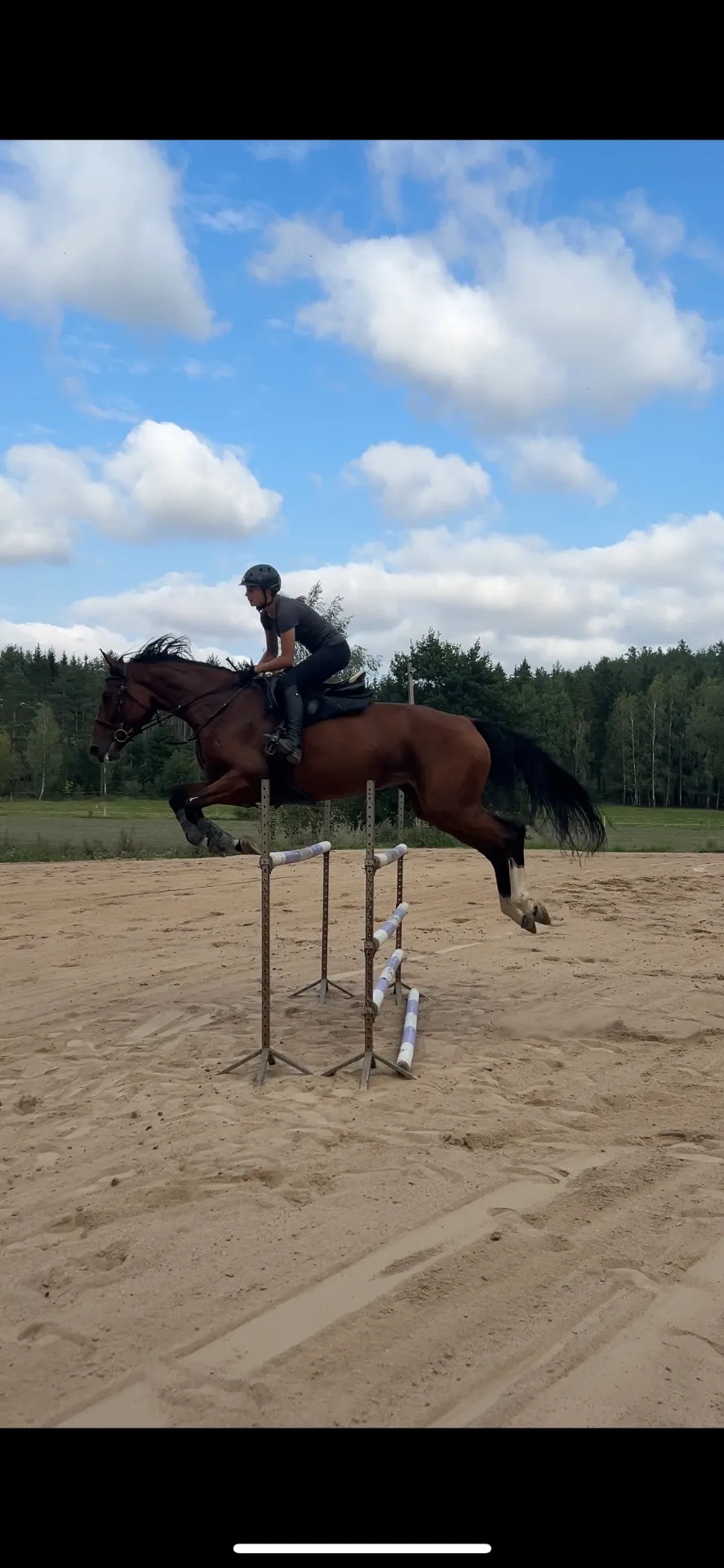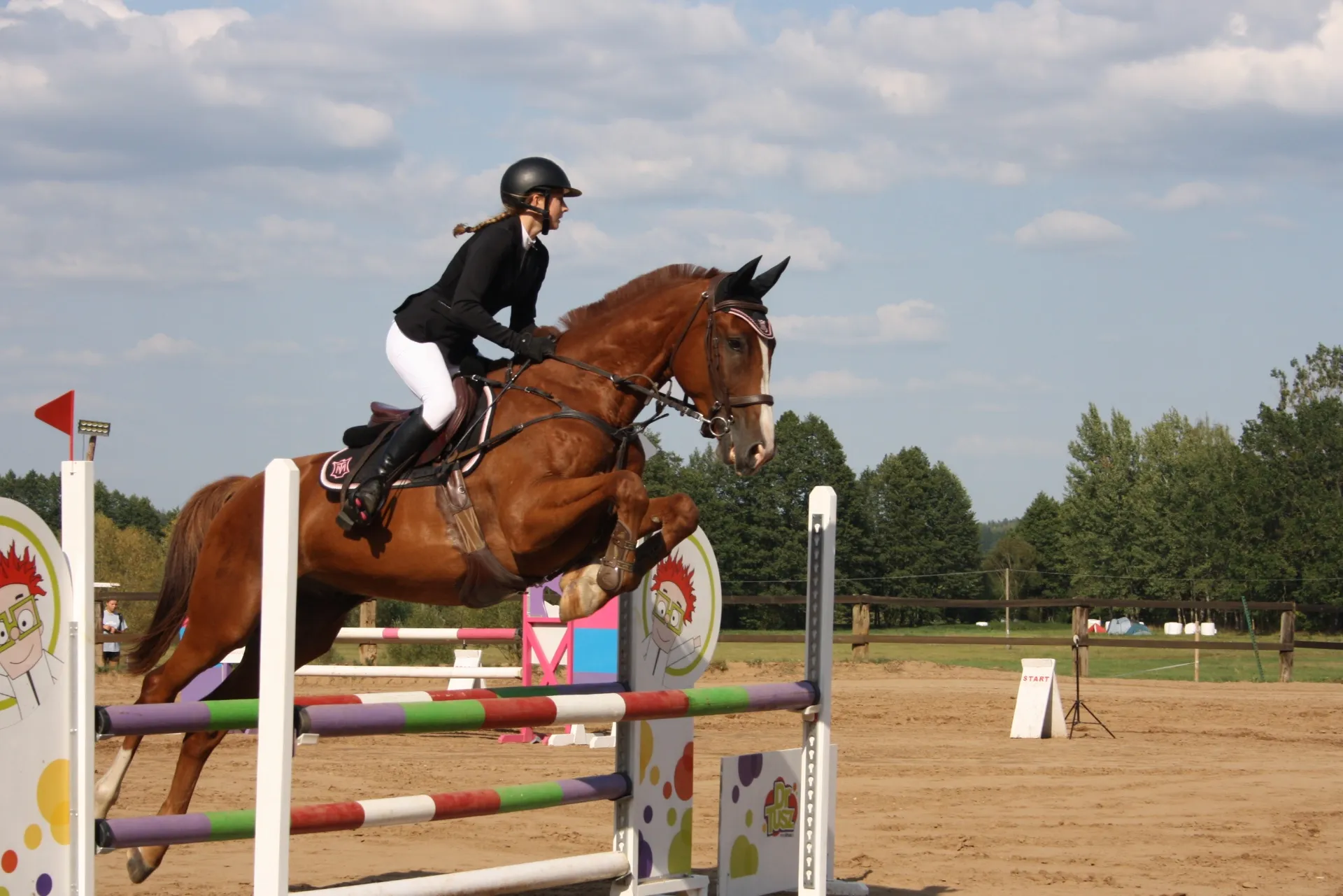 Jestem czynną zawodniczką skoków przez przeszkody (do N klasy włącznie) oraz okazjonalnie ujeżdżenia. Posiadam uprawnienia Instruktora Jazdy Konnej PZJ oraz ukończony kurs lonżowania na podwójnej lonży.