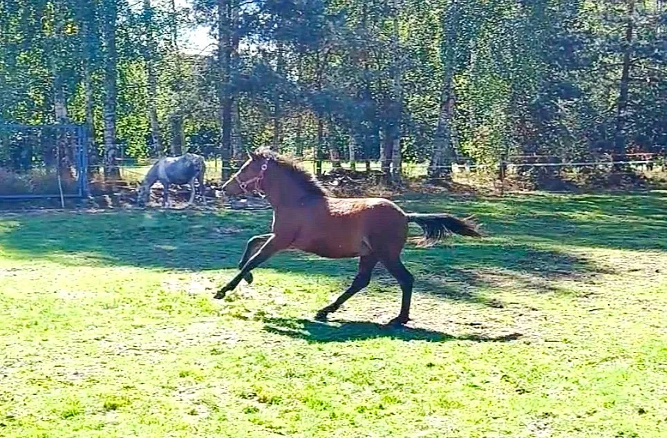 Ma ukończone 6 miesięcy, po rodzicach z księgą główną, matka Pasja (OUSOR), ojciec Largo (OUSOR) - na dwóch ostatnich zdjęciach. Na miejscu do zobaczenia pełna siostra ogierka.